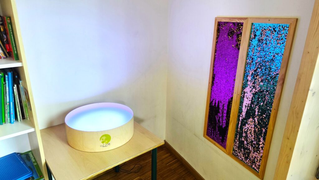 Ein Leuchttisch und Massageelemente laden die Sinne zu einer Reise der Wahrnehmung für den Körper ein.